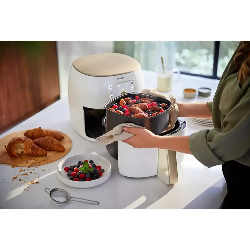 Philips Airfryer XXL HD9870 با ظرفیت ۷.۳ لیتر ترکیبی از قدرت، حجم، تنوع و کارایی را در یک دستگاه ارائه میدهد. کاربری آسان، برنامههای خودکار، و تمیزکردن راحت باعث صرفهجویی در زمان و انرژی میشوند. سایر مشخصات نیز در بالا درباره آنها سخن گفتیم تا بهتر این محصول را بشناسید.