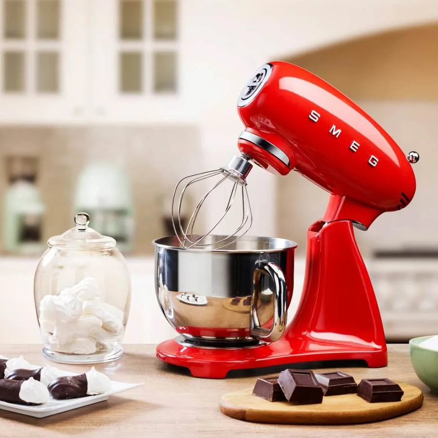 اگر برای آشپزخانه به دنبال تهیه وسایل ضروری هستید، باید به شما بگوییم که همزن برقی اسمگ SMEG را هم برای ترکیب مواد اولیه حین پختوپز تهیه کنید. رنگهای خاص و لوکس از این میکسر یک دکوری چشمنواز نیز میسازند.