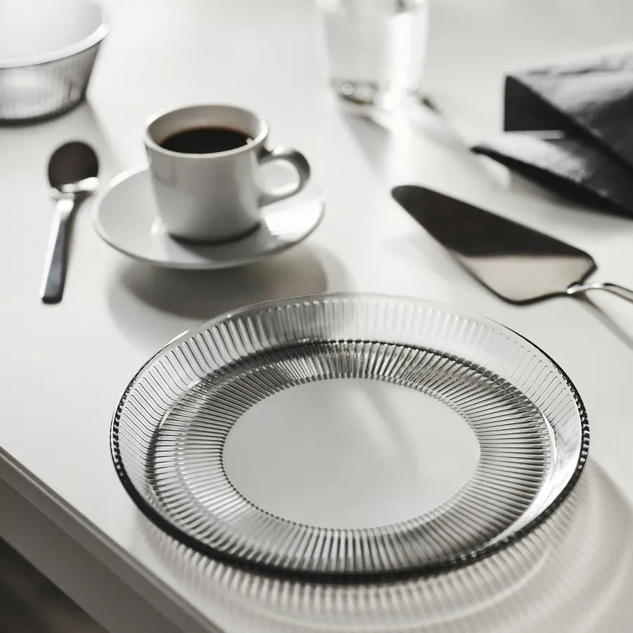 سرویس غذاخوری HAVSGÄDDA را به میز خود بیاورید تا جلوهای چشمنواز و دلپذیر بیافریند! خطوط ظریف آن بازتابی زیبا در شیشه ایجاد میکنند و در کنار سایر ظروف، هماهنگی شیک و جذابی میسازند. رنگ خاکستری نیز با لمس ظرافت و وقار، جلوهای خاص به چیدمان شما میبخشد.