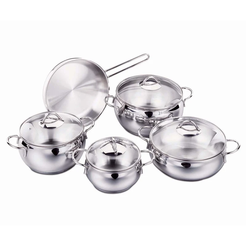 | تعداد پارچه | ۹ پارچه (۴ قابلمه + ۱ تابه دو دسته + ۴ درب) |