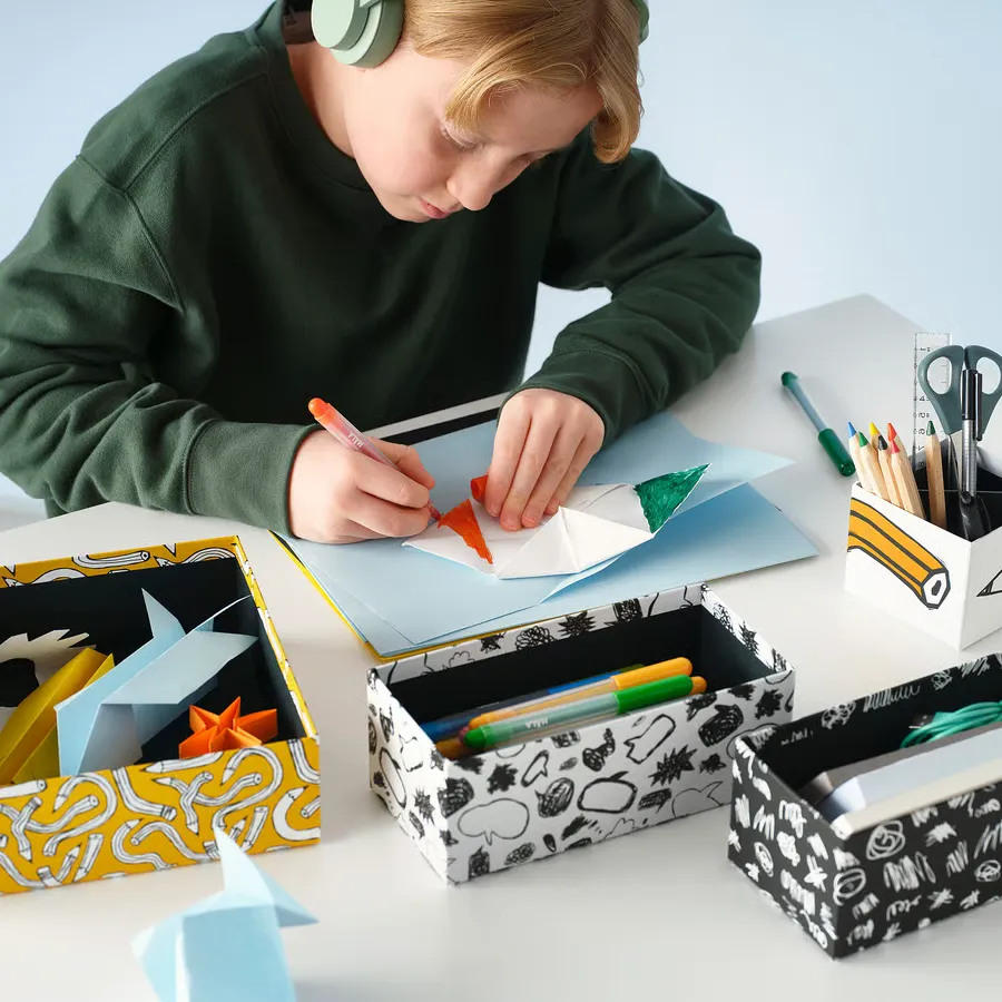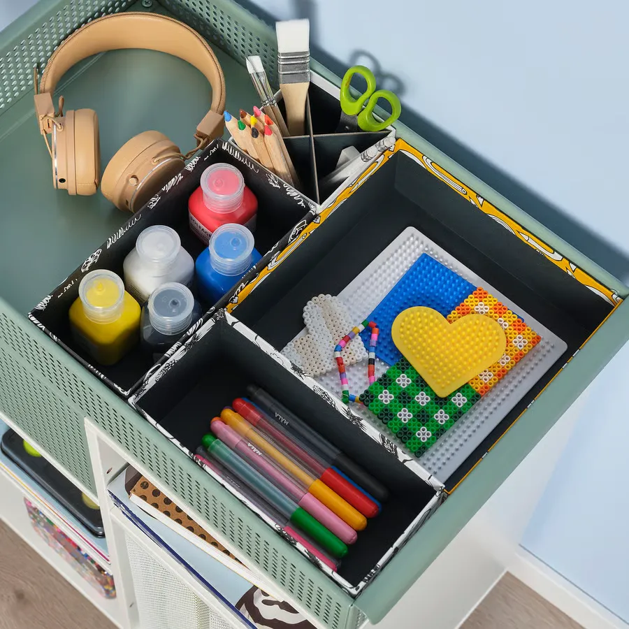 اگر به دنبال راهی برای نظمدهی به وسایل کوچک کودکان هستید—از قلمها و کاغذها گرفته تا لوازم هنری و سرگرمی—ست LYSMASK ایکیا بهترین گزینه است. ستی رنگی و خاص که میتوانند در صورت خالیبودن آنها را درون هم قرار دهند.