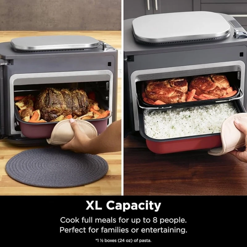 ظرفیت بالایی دارد و شما میتوانید برای خانواده متوسط تا پرجمعیت ۸ نفره روی پخت آن حساب کنید. برای زمانی که مهمان با تعداد بالا دارید و بادی یک سری غذا را به صورتی خاص درست کنید، مثلاً گریل نمایید، اما نمیخواهید کبابپز یا فر بزرگتان را برای آن کثیف کنید، این دستگاه به کمکتان میآید.