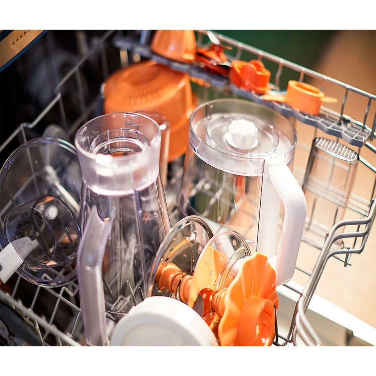 هنگام کار با غذاساز دیگر نگران این که ناگهان سرعت بالا رود و دستگاه از روی سطح پایین بیفتد هم نیستید؛ چرا که دارای پایه ضدلغزش است. البته بهتر است باز هم شما مراقب این موضوع باشید. علاوه بر این، بیشتر قطعات جانبی این غذاساز قابلشستوشو در ماشین ظرفشویی هستند که شستشو را بسیار آسانتر میکند.