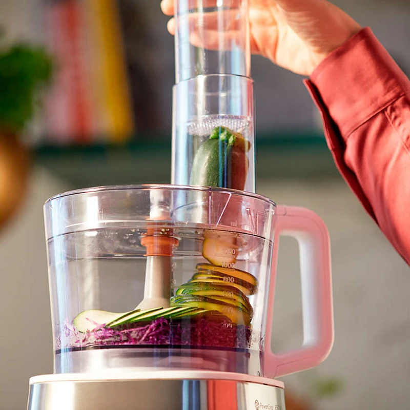 بااینحال میتوان گفت که یک دستگاه خوب در زمینه شیرینیپزی و نانپزی هم محسوب میشود.کاسه غذاساز دارای ورودی بزرگی است که میتوان مواد اولیه را با برش متوسط هم وارد دستگاه کرد. زمانی که غذاساز دارای حجم بالایی از مواد است، ممکن است بر اثر لرزش دستگاه حرکت کند یا سر بخورد، اما فیلیپس برای این محصول پایههای ضدلغزش طراحی میکند تا از این اتفاقات تا حد زیادی جلوگیری نماید.