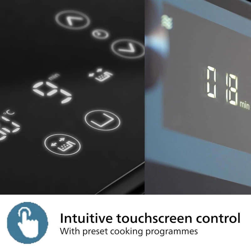 این هواپز فیلیپس دارای یک صفحه نمایشگر است. این صفحه لمسی است و زیبایی ظاهر کالا را هم بالا میبرد. دمای قابلتنظیم بین ۴۰ تا ۲۰۰ درجه سانتیگراد است و زمان تا ۶۰ دقیقه قابلتنظیم است.