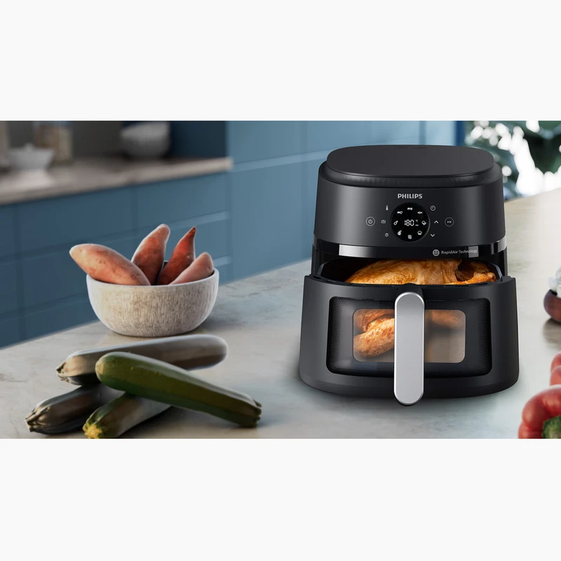 این هوای داغ باعث تُردشدن سطح غذا میشود در حالیکه بافت درونی نرم است. این سرخ کن دارای 13 برنامه پیش فرض است.یعنی تنها برای سرخکردن نیست بلکه میتوان میوه یا سبزی خشک کرد، غذایی را مجددا گرم کرد و… . همچنین با استفاده از این دستگاه، چربی غذا تا حداکثر ۹۰٪ کمتر میشود.