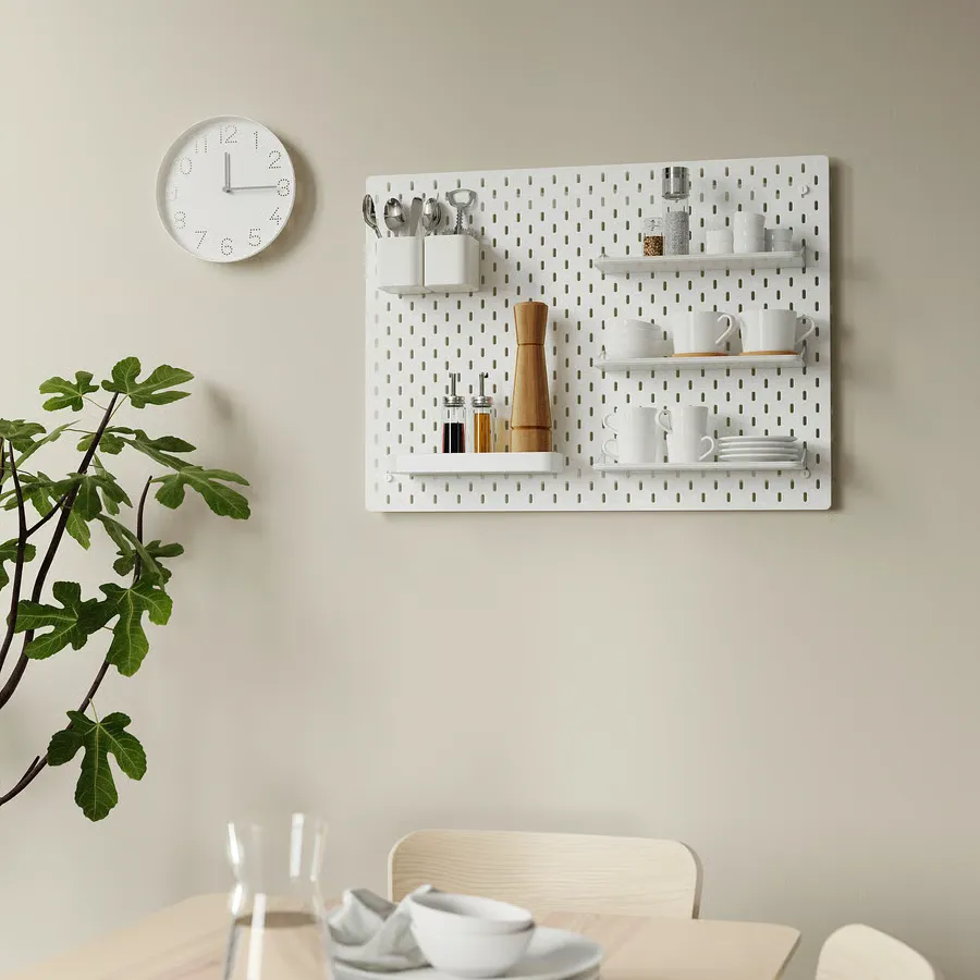 استفاده از وسایلی همچون پگ بوردها میتوانند در نگهداری مناسب لوازمی که باید همیشه دم دست باشند، کمک فراوانی بکنند. با افزودن اکسسوریهای SKÅDIS میتوانید یک سیستم ذخیرهسازی اختصاصی بسازید که هم کاربردی باشد و هم جلوهای مدرن و شیک به خانه شما بدهد.