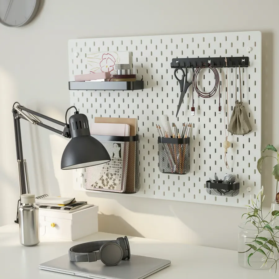 شلف پگ بورد ایکیا مدل SKADIS یک انتخاب هوشمندانه برای افرادی است که به نظم، زیبایی و طراحی مدرن اهمیت میدهند. با نصب آسان، کیفیت بالا و قابلیت استفاده در هر نقطه از خانه، این شلف نه تنها فضای شما را منظم میکند بلکه جلوهای خاص و امروزی به دکوراسیون میبخشد.