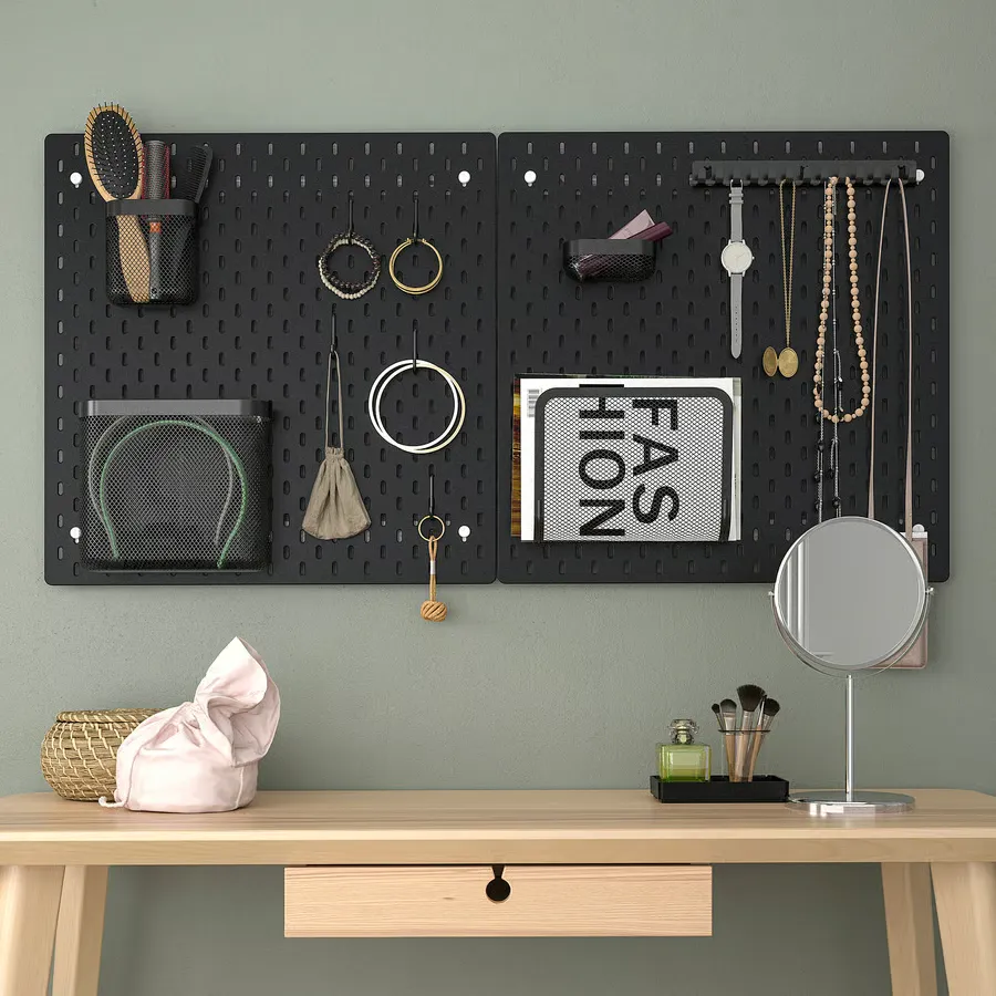 از دیگر اکسسوریهای SKADIS نیز کمک بگیرید و تختههای دیواری این مجموعه را مرتب و منظم چیدمان نمایید. این سبدها در هر جایی از خانه حتی حمام که پگ بورد نصب است، قابلیت استفاده دارند و جنس خوب و مقاومی دارند که در بربر استفاده طولانیمدت تابآوری بالایی داشته باشند.