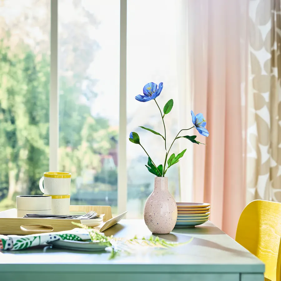گل مصنوعی ایکیا مدل SMYCKA، مدل پاپی / آبی/ ارتفاع ۵۷ سانتیمتر، گلی است که حضورش حالوهوای خانه را دگرگون میکند. ین گل ظریف و خوشرنگ، با طراحی واقعگرایانهاش همان قدر طبیعی و زنده به نظر میرسد که گویی تازه از میان علفزار چیده شده باشد.