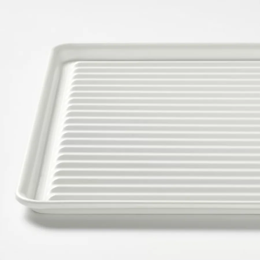 طراحی شیاردار هوشمندانه به شما کمک میکند تا زمانی که از این سینی بهتنهایی استفاده میکنید و ظروف ورا وارونه روی آن قرار میدهید تا خشک شوند، باعث میشود هوا بهتر جریان پیدا کند و وقتی ظرفها را وارونه روی سینی قرار میدهید، آب سریعتر تبخیر شود.